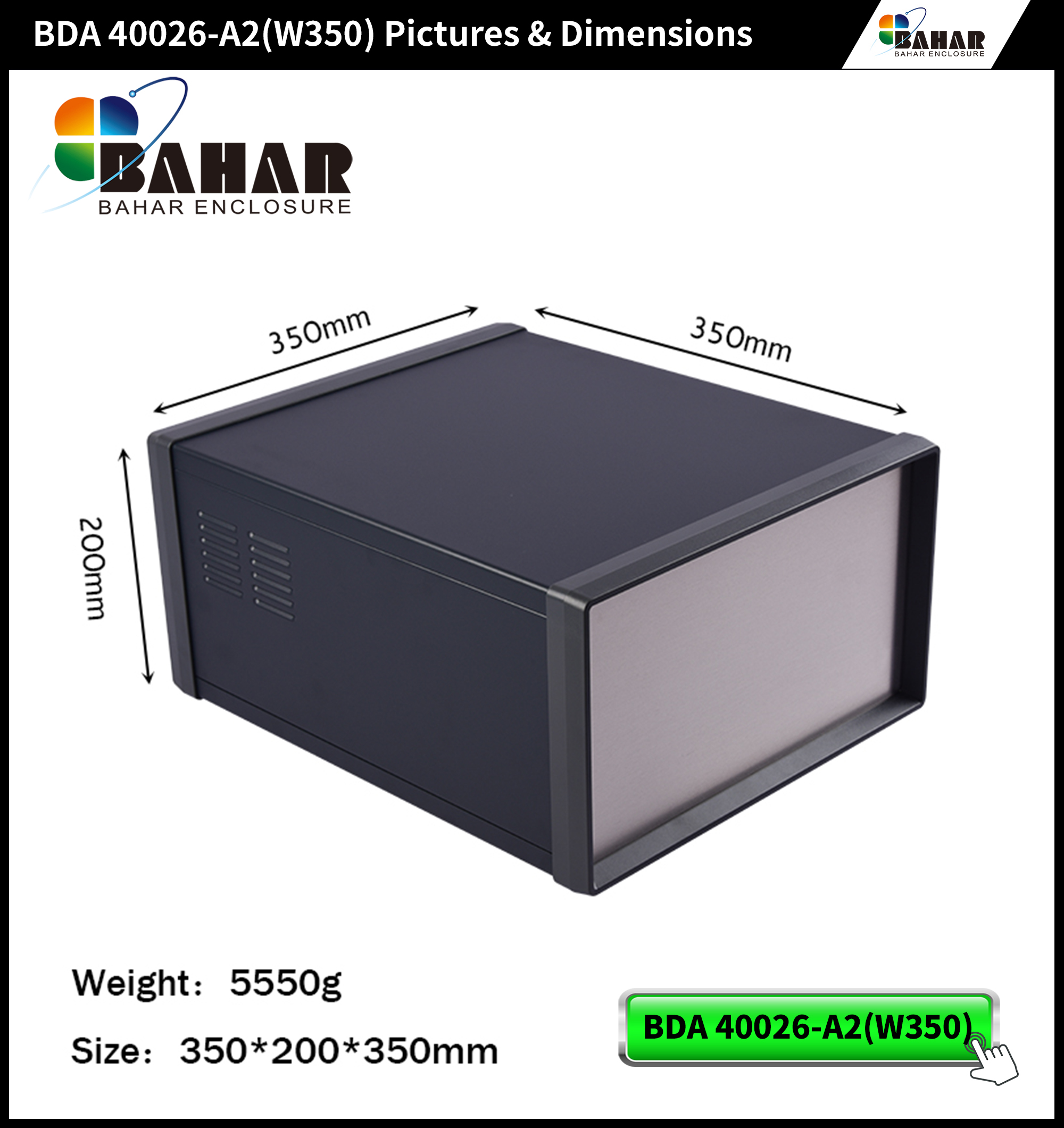DIY变频器仪器安防盒电器仪表金属机箱BAHAR壳体BDA40026(W350)