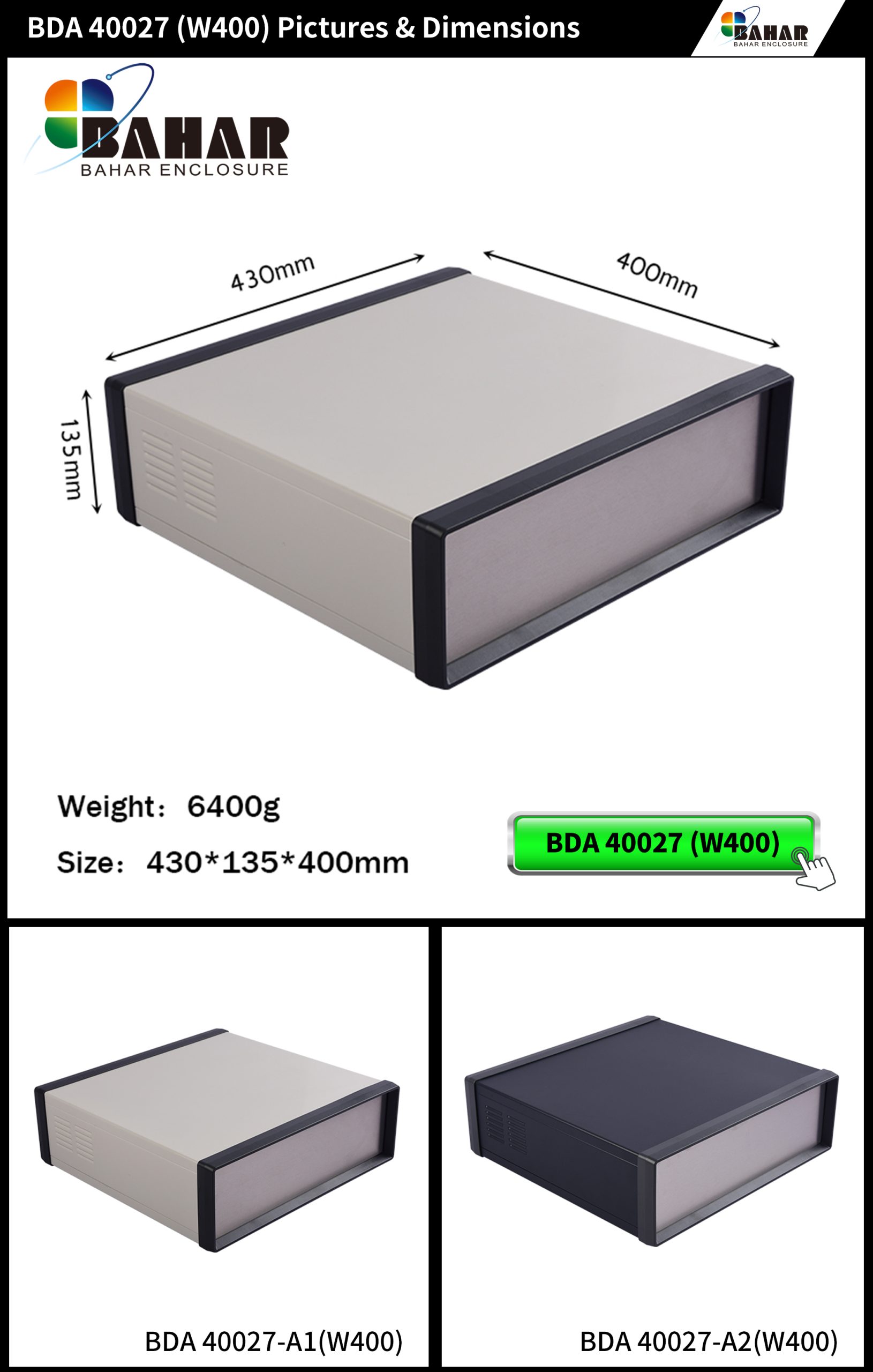 DIY设备变频器仪表电解板机箱外壳巴哈尔壳体BDA40027(W400)