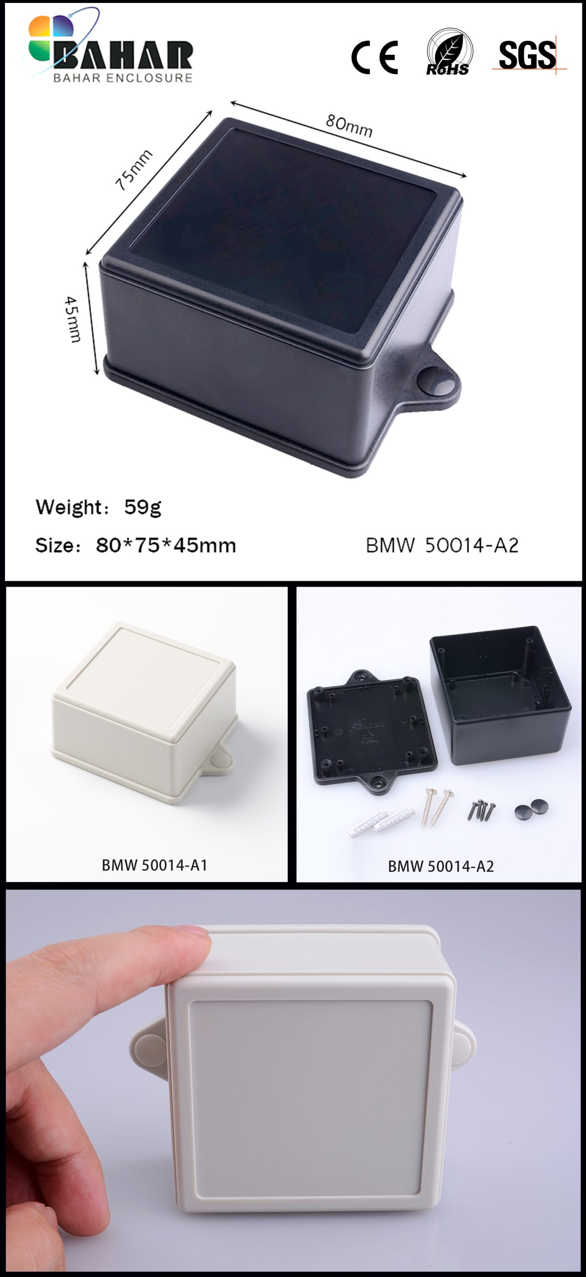 巴哈尔壳体塑料电子产品外壳带耳朵外壳DIY墙挂式仪表盒