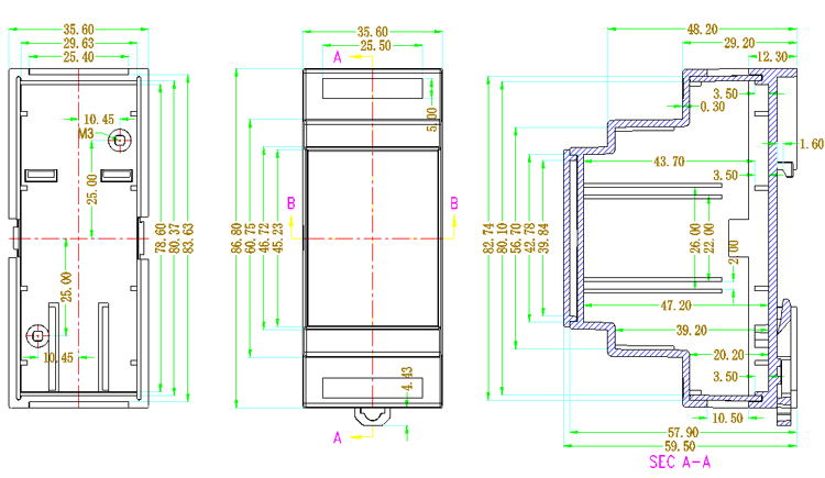 | 产品表面为磨砂面,可以安装在标准导轨上。 |