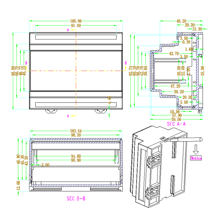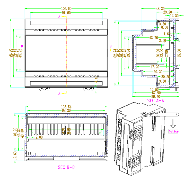 | 产品表面为磨砂面,可以安装在标准导轨上。 |