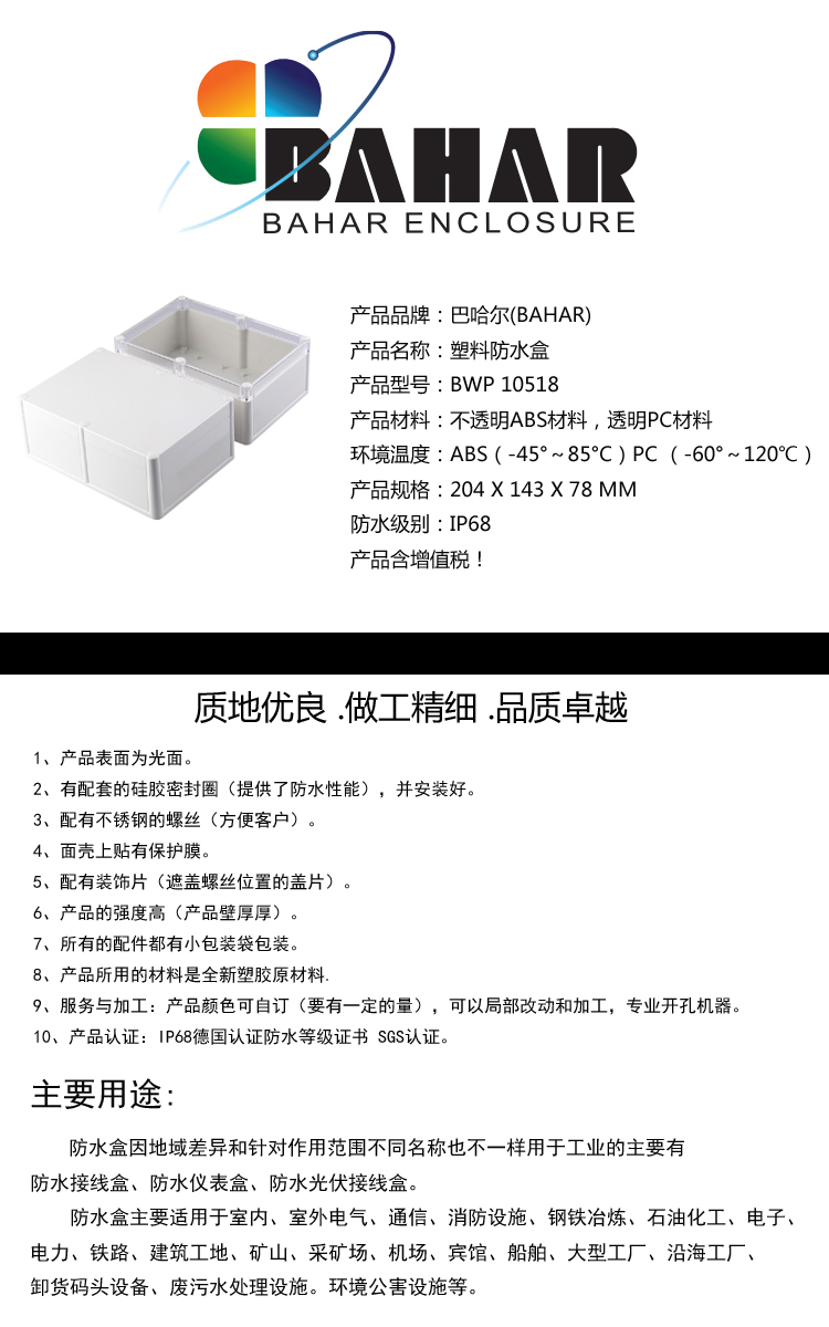 | 产品名称 | 塑料防水盒 |